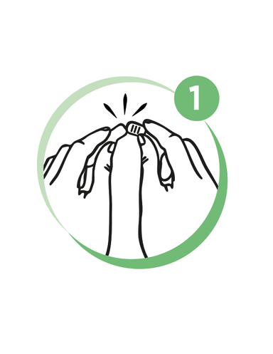 Tenere la pipetta in verticale, con la punta rivolta verso l'alto. Dare dei leggeri colpetti sulla parte stretta per assicurarsi che tutto il liquido si raccolga nel corpo principale della pipetta, quindi rompere l'estremità pre-tagliata.