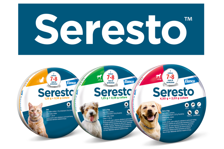 Seresto è un collare antiparassitario con matrice polimerica a tecnologia brevettata per cane e gatto che, con una sola applicazione, agisce contro pulci e zecche fino a 8 mesi e riduce il rischio di trasmissione di leishmaniosi fino a 8 mesi nel cane. È un medicinale veterinario. Leggere attentamente il foglio illustrativo. L'uso scorretto può essere nocivo. Tenere fuori dalla portata dei bambini. Adatto anche per cuccioli dalle 7 settimane di età e per gattini dalle 10 settimane di vita. Chiedi consiglio al tuo veterinario. Aut. Pub. N. 114/VET/2022